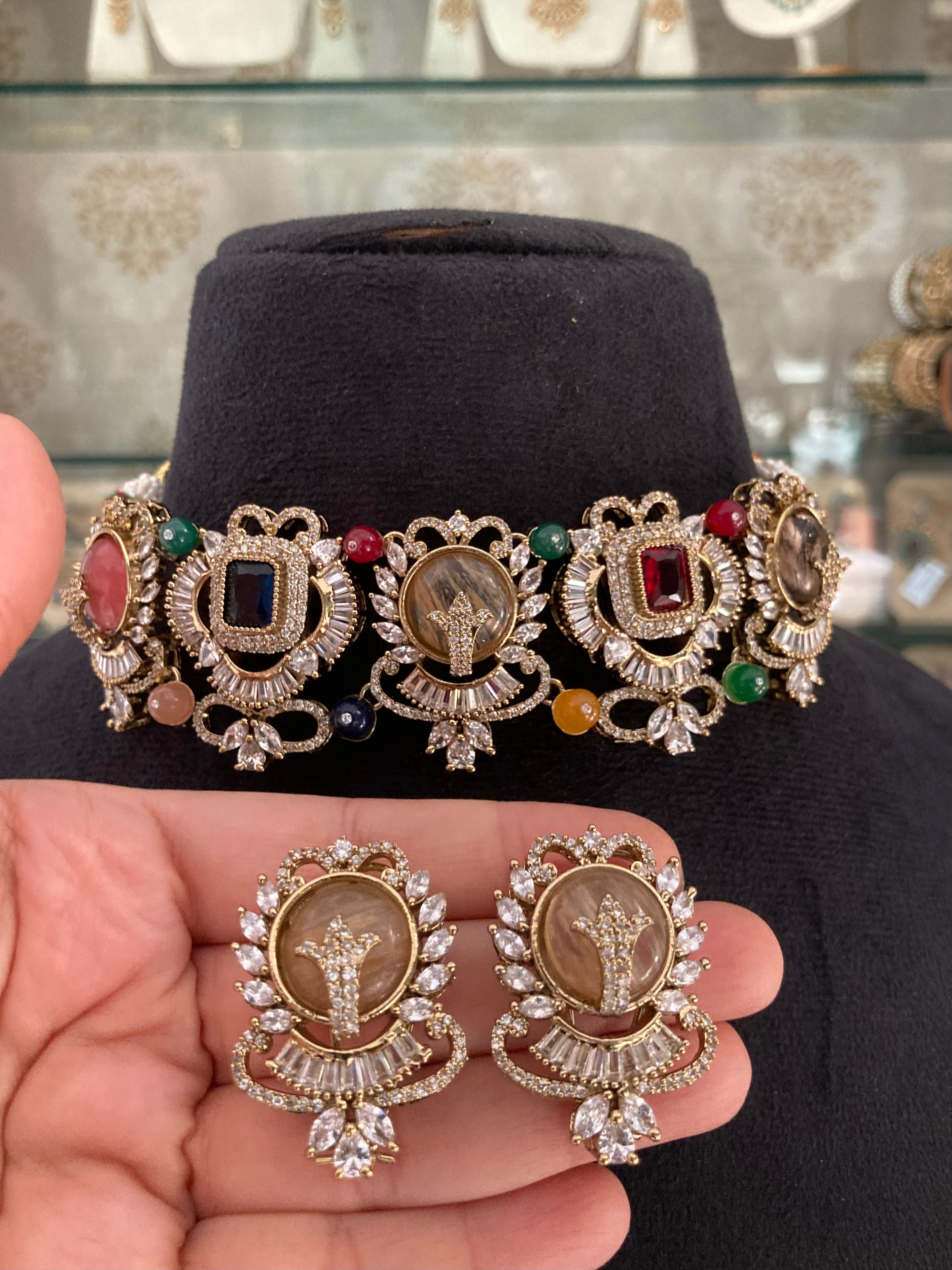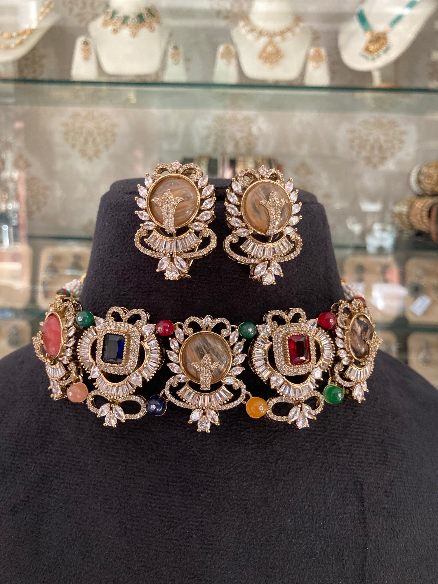 Brass based premium quality Sabhya Sachi pattern With channel and rose setting and beautiful multi stones