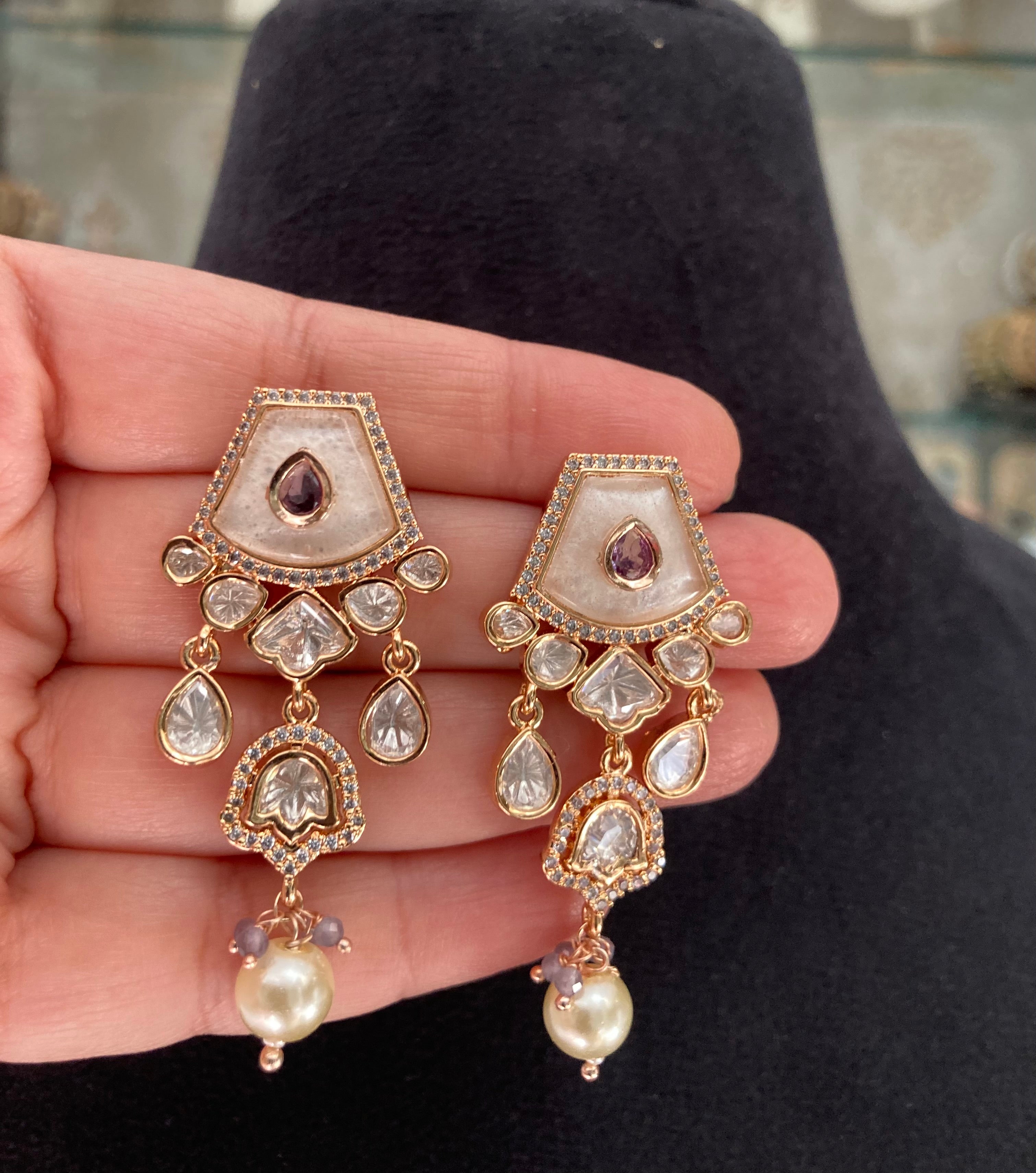 Brass based premium quality MOP Polki choker necklace Set with earrings