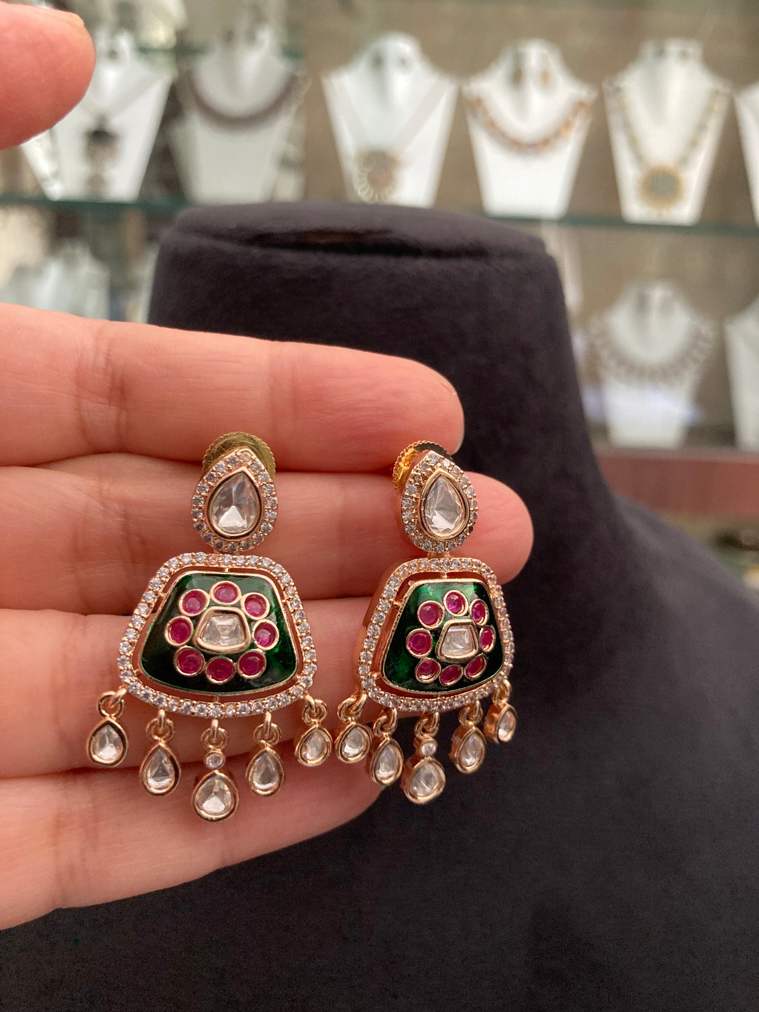 Brass based premium quality open Polki choker necklace With ruby colour stone and green Meenakari